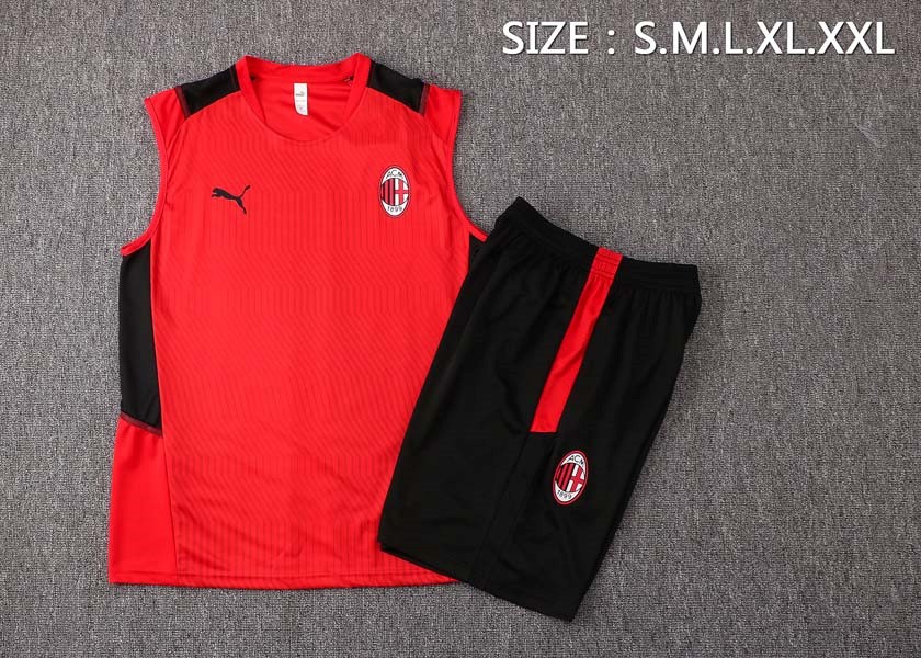 • Camiseta AC Milan Sin Mangas Conjunto Completo 2022 Rojo Negro