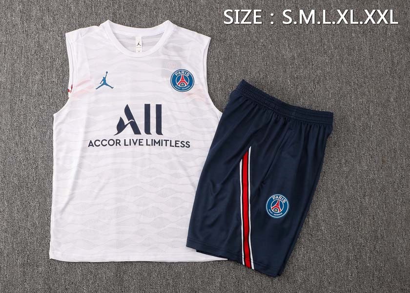 • Camiseta Paris Saint Germain Sin Mangas Conjunto Completo 2022 Blanco Negro